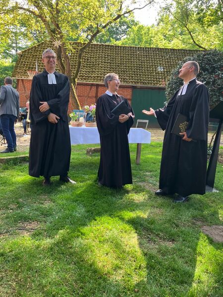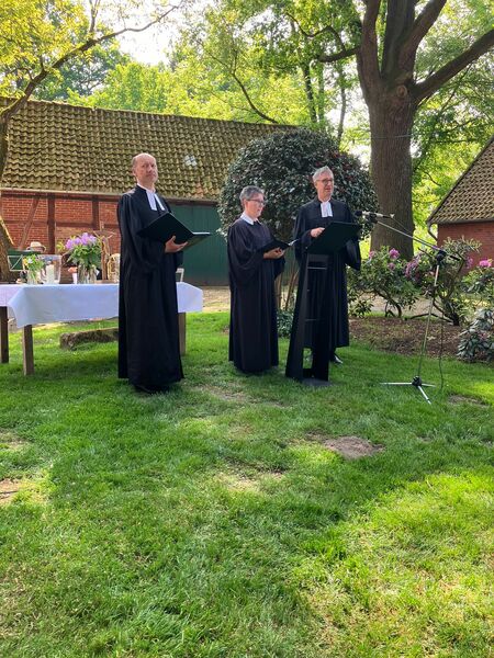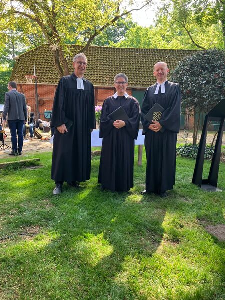Gottesdienst unter freiem Himmel. Das ist schon etwas besonderes. Und dann noch mit drei Gemeinden zusammen: Altencelle, Blumlage und Westercelle hatten gemeinsam zum regionalen Gottesdienst mit Pastor Proell, Pastor Loic Berge und Prädikantin Ute Kronemeyer (von links nach rechts auf unserem Foto) geladen. Für die musikalische Begleitung sorgte der Posaunenchor aus Altencelle unter der Leitung von Steffen Hollung.