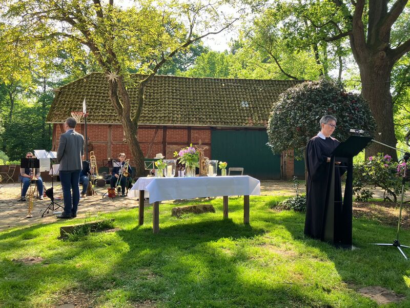 „Es war schon sehr beeindruckend, wie sich die Stuhlreihen mit Menschen füllten“, sagt Prädikantin Ute Kronemeyer. „Strahlend blauer Himmel und Vogelgezwitscher - schöner hätte dieser Tag nicht beginnen können.“