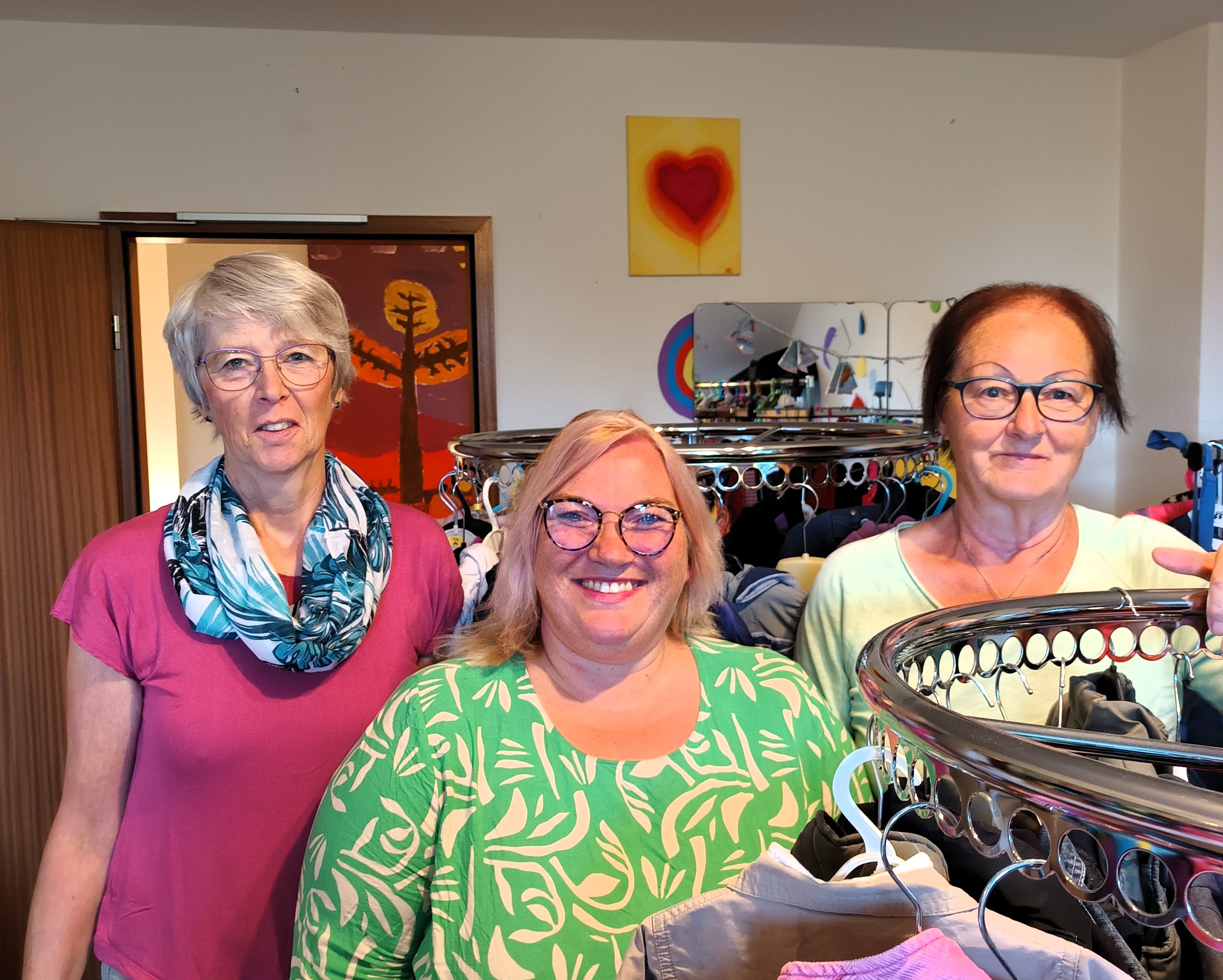 Dass der Laden so gut läuft, wie er läuft, hat sehr viel mit Leiterin Denise Dietrich (auf unserem Foto in der Mitte, links neben ihr Pastorin Antje Seelemeyer, rechts von ihr Ehrenamtliche Renate Zimmermann) und den sieben Ehrenamtlichen zu tun, die das Second-Hand-Angebot am Leben erhalten: Kleiderspenden annehmen, sortieren, platzieren, Preise festlegen, zur Beratung vor Ort sein, kassieren. Pastorin Antje Seelemeyer sagt: „Wir freuen uns vor allem über den zwischenmenschlichen Austausch und das Miteinander vor Ort. Mit so einem Projekt wird Gemeinde noch lebendiger.“