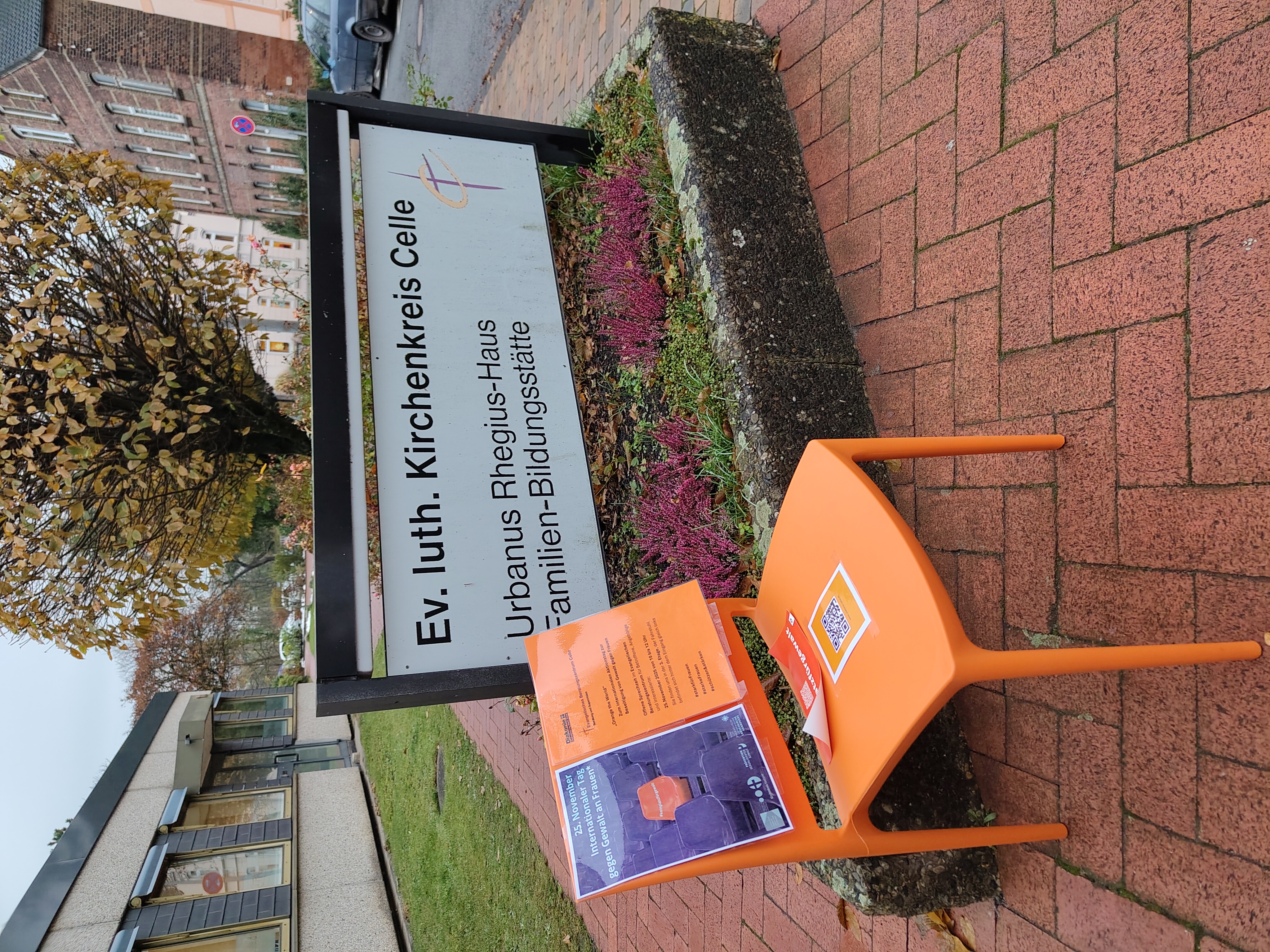 Am sogenannten „Orange Day“ wird weltweit mit Aktionen auf die weiterhin ausufernde Gewalt gegen Frauen aufmerksam gemacht. Sichtbares Zeichen dafür: Orangefarbene Stühle oder andere Gegenstände. Auch im Ev.-luth. Kirchenkreis Celle beteiligen sich verschiedene Einrichtungen und Gemeinden am „Orange Day“.