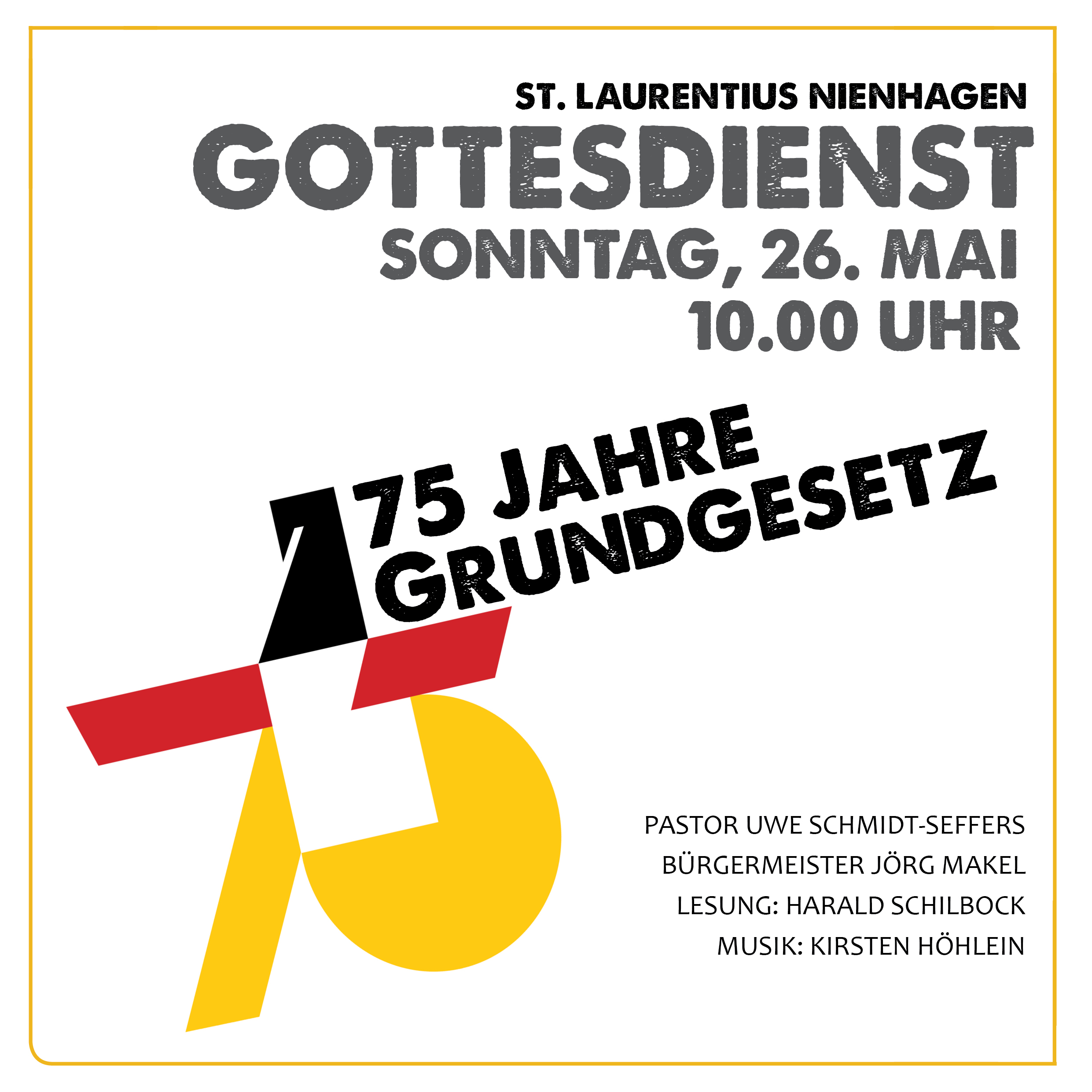 Am 23. Mai vor 75 Jahren trat das Grundgesetz der Bundesrepublik Deutschland in Kraft. Nienhagens Bürgermeister Jörg Makel und Pastor Uwe Schmidt-Seffers laden anlässlich dieses Jubiläums zu einem Gottesdienst am 26. Mai um 10 Uhr in die Laurentiuskirche ein.