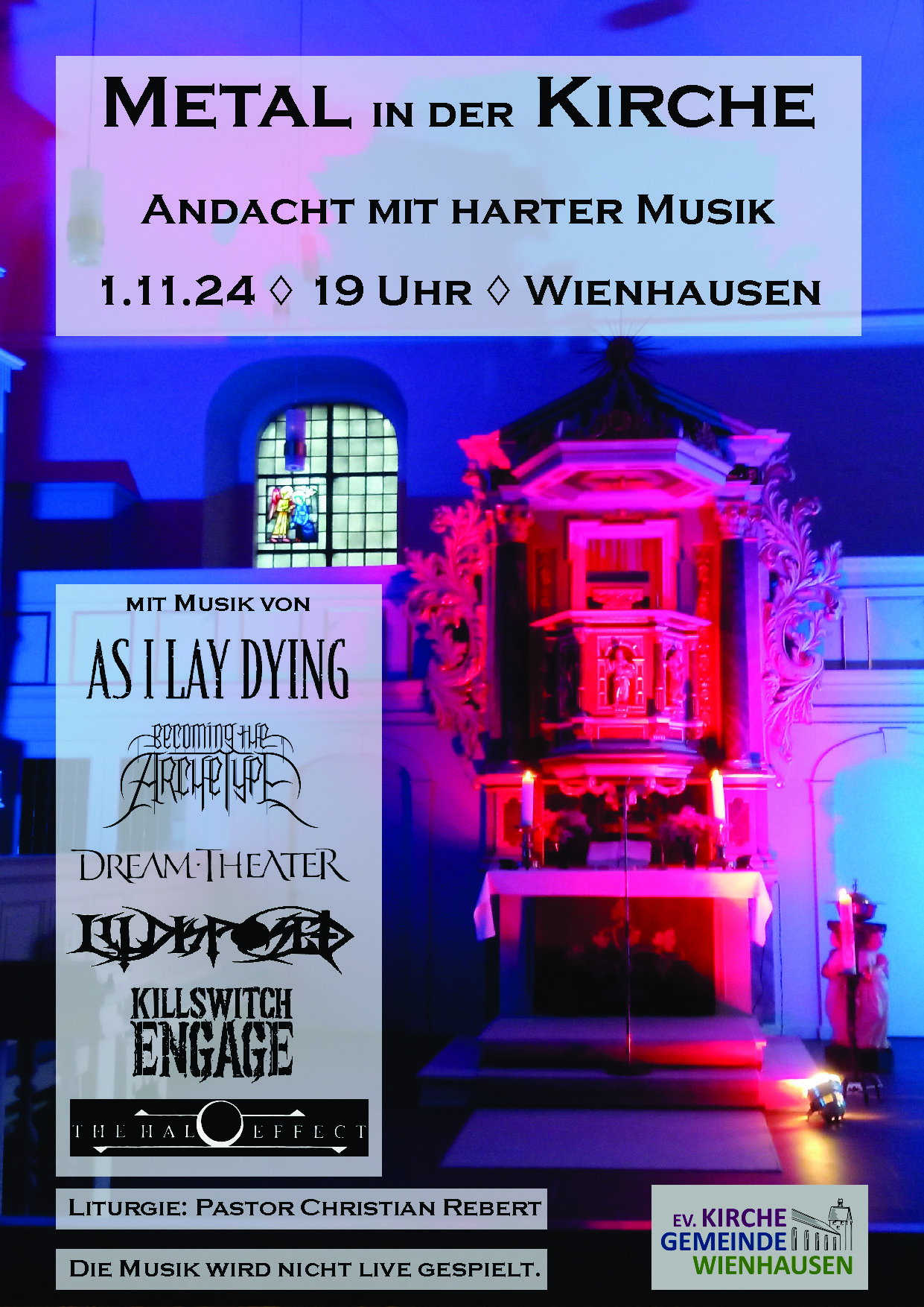 Andacht mit harter Musik am 01. November 2024 um 19 Uhr in der St. Marienkirche Wienhausen. Die Musik wird nicht live gespielt. Liturgie: Pastor Christian Rebert.