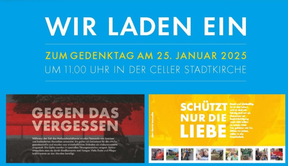 In einer gemeinsamen Aktion wollen die Lebenshilfe Celle, der Evangelisch-lutherische Kirchenkreis Celle, die Stiftung niedersächsische Gedenkstätten und die Celler Lobetalarbeit der Opfer des Nationalsozialismus, insbesondere der Menschen mit Behinderung, gedenken. Ebenso soll an diesem Tag aber auch an das seit 1945 Erreichte erinnert werden.