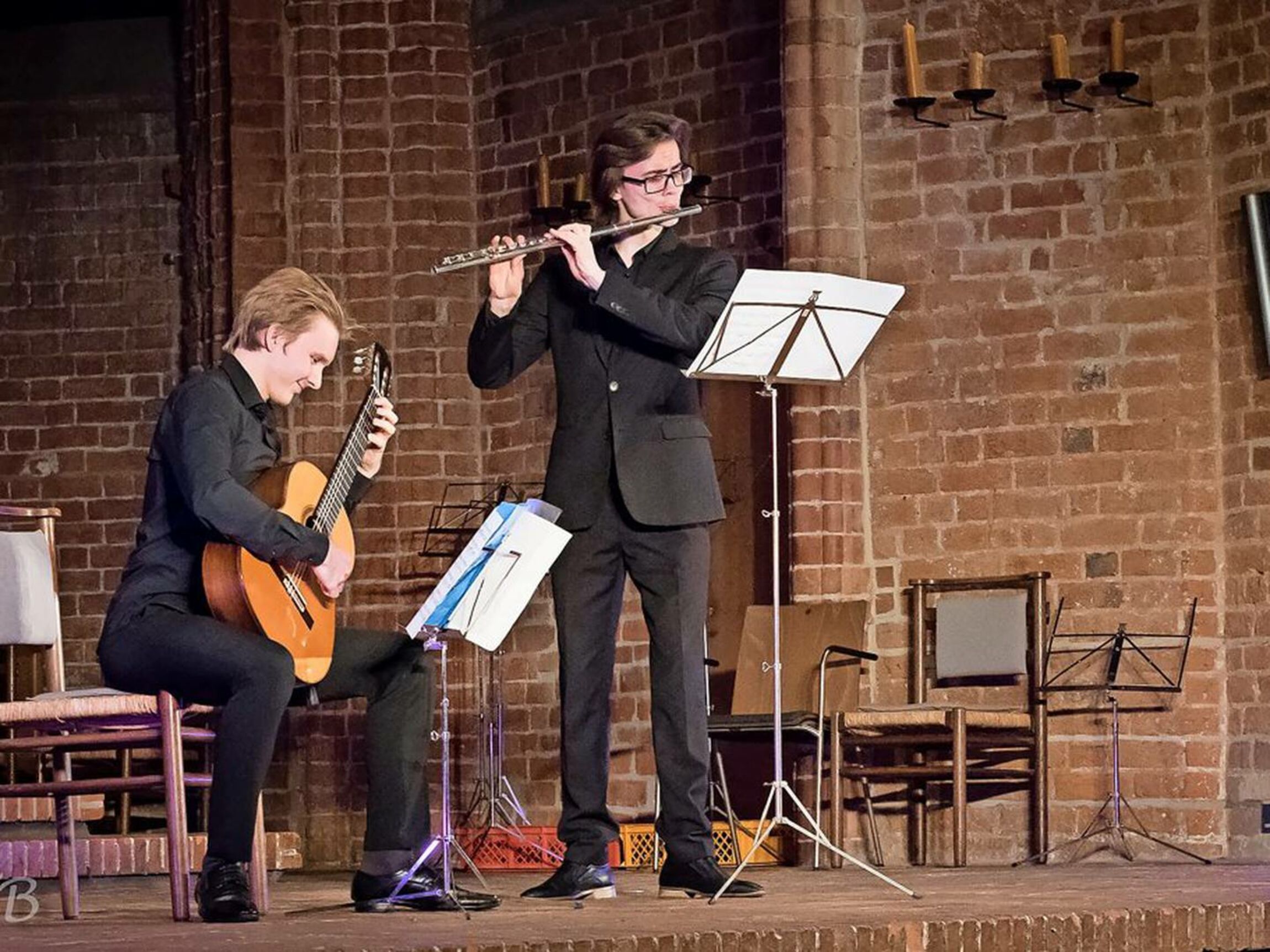 Die jungen ukrainischen Musiker Pavlo Pakshyn, Gitarre, und Tymofii Dei, Querflöte, werden Werke von Mozart, aber auch von zeitgenössischen Künstlern wie Di Marino und Piazzolla spielen. Die beiden Musiker bringen ihre Instrumente so ein, dass sie in ihren Klangfarben ein breites Spektrum an musikalischen Ausdrucksmöglichkeiten bieten. Die Gitarre wird sowohl begleitend als auch solistisch eingesetzt, die Querflöte mit ihren melodischen Linien und virtuosen Passagen sorgt für eine schöne Klangbalance, so dass das Zusammenspiel ein Hörgenuss wird.