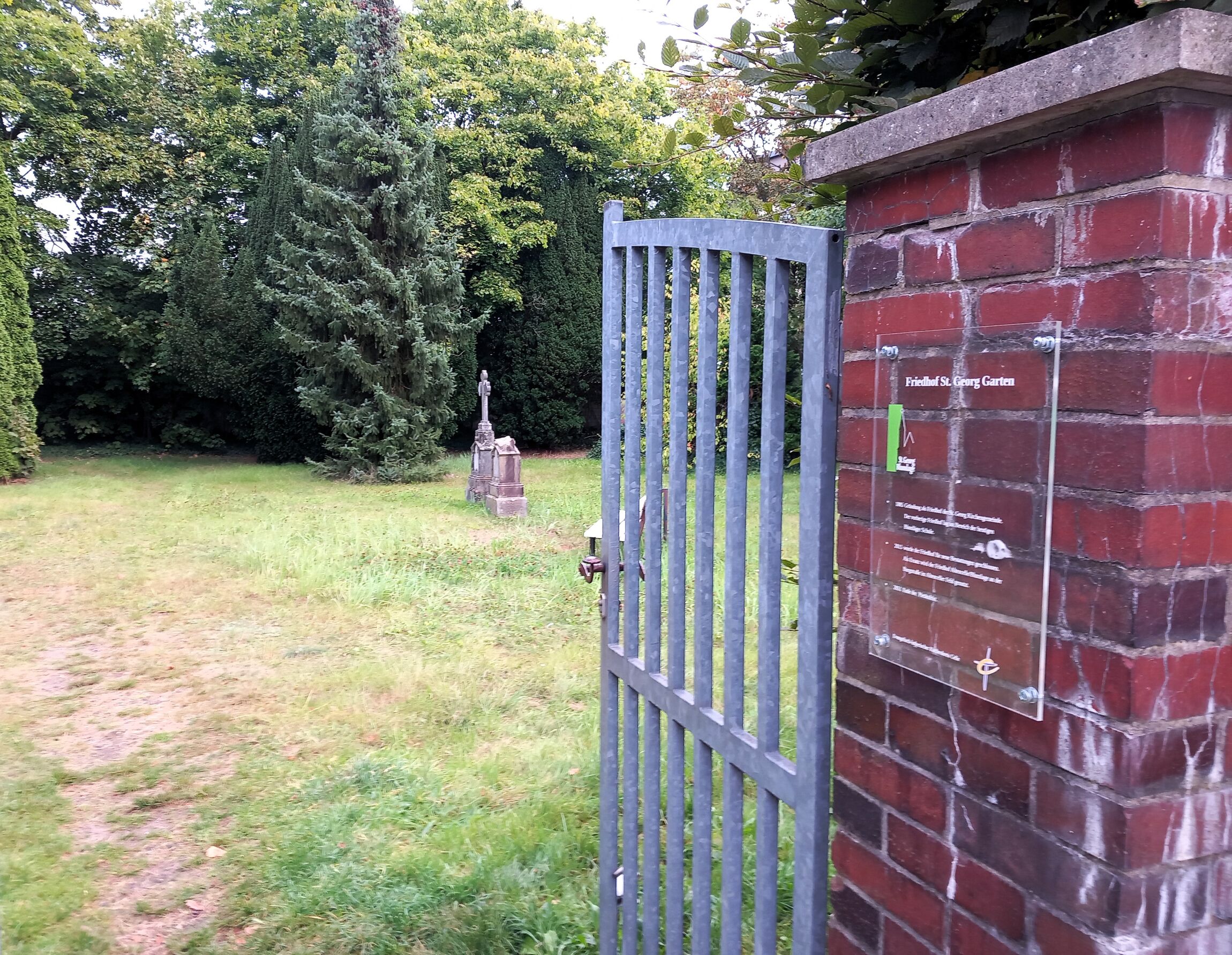 Gleich gegenüber von der wunderschönen Kirche der Gemeinde Blumlage, dort wo aus Blumlage die Braunschweiger Heerstraße wird, liegt hinter hohen Bäumen ein kleines Geheimnis versteckt. Der Friedhof „St. Georg Garten“ ist seit vielen Jahren nicht mehr in Betrieb. 2012 fand die letzte Beisetzung statt, drei Jahre später wurde er offiziell für weitere Bestattungen geschlossen. Damit endet eine Tradition, die 1885 ihren Anfang genommen hatte.