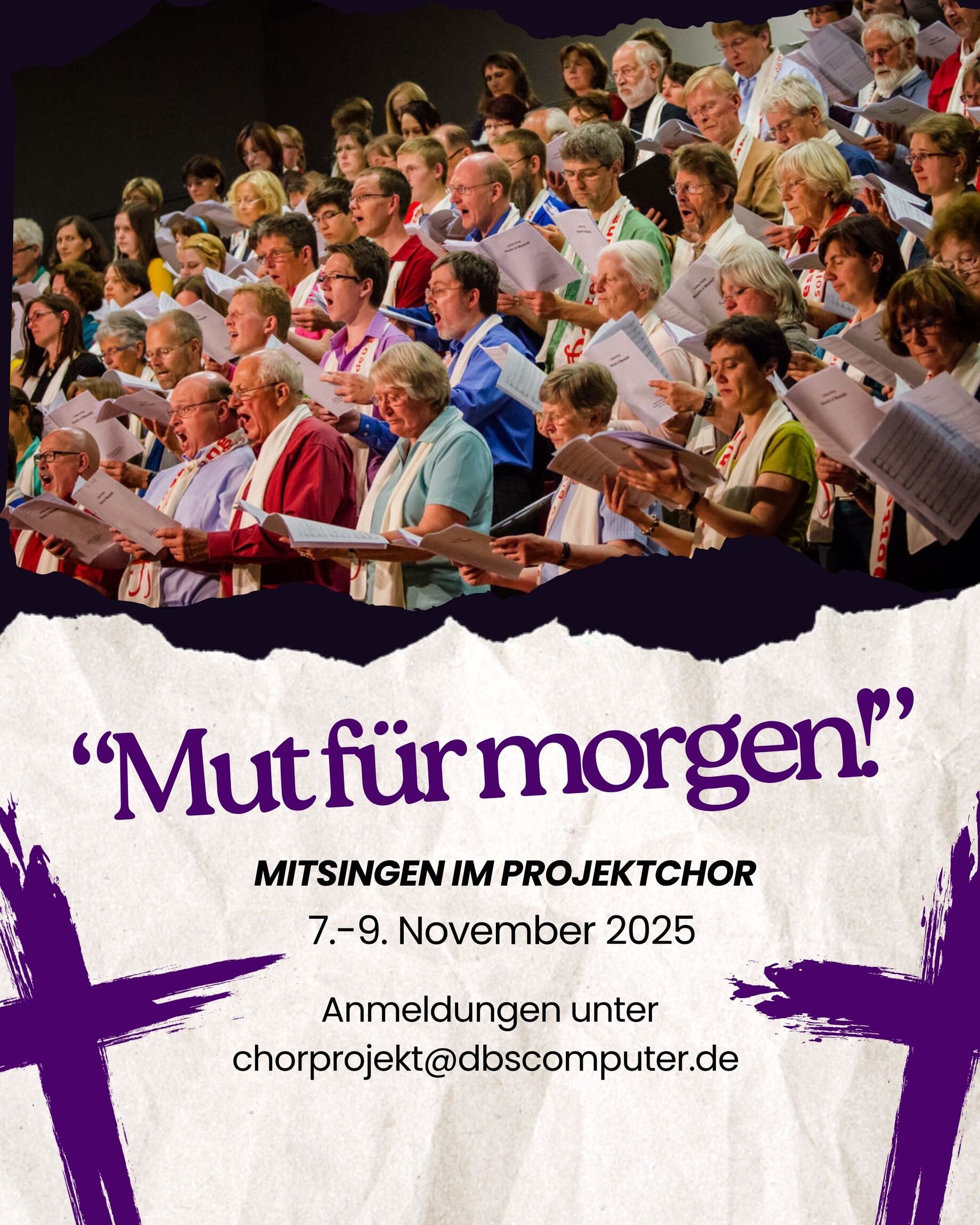 Im Gottesdienst am Sonntag, den 9. November um 10 Uhr, werden diese präsentiert und laden zum Mitsingen ein. Die Freude am Singen steht im Vordergrund, Notkenntnisse werden nicht vorausgesetzt. Wer mitsingen möchte, meldet sich bitte unter chorprojekt@dbscomputer.de an.