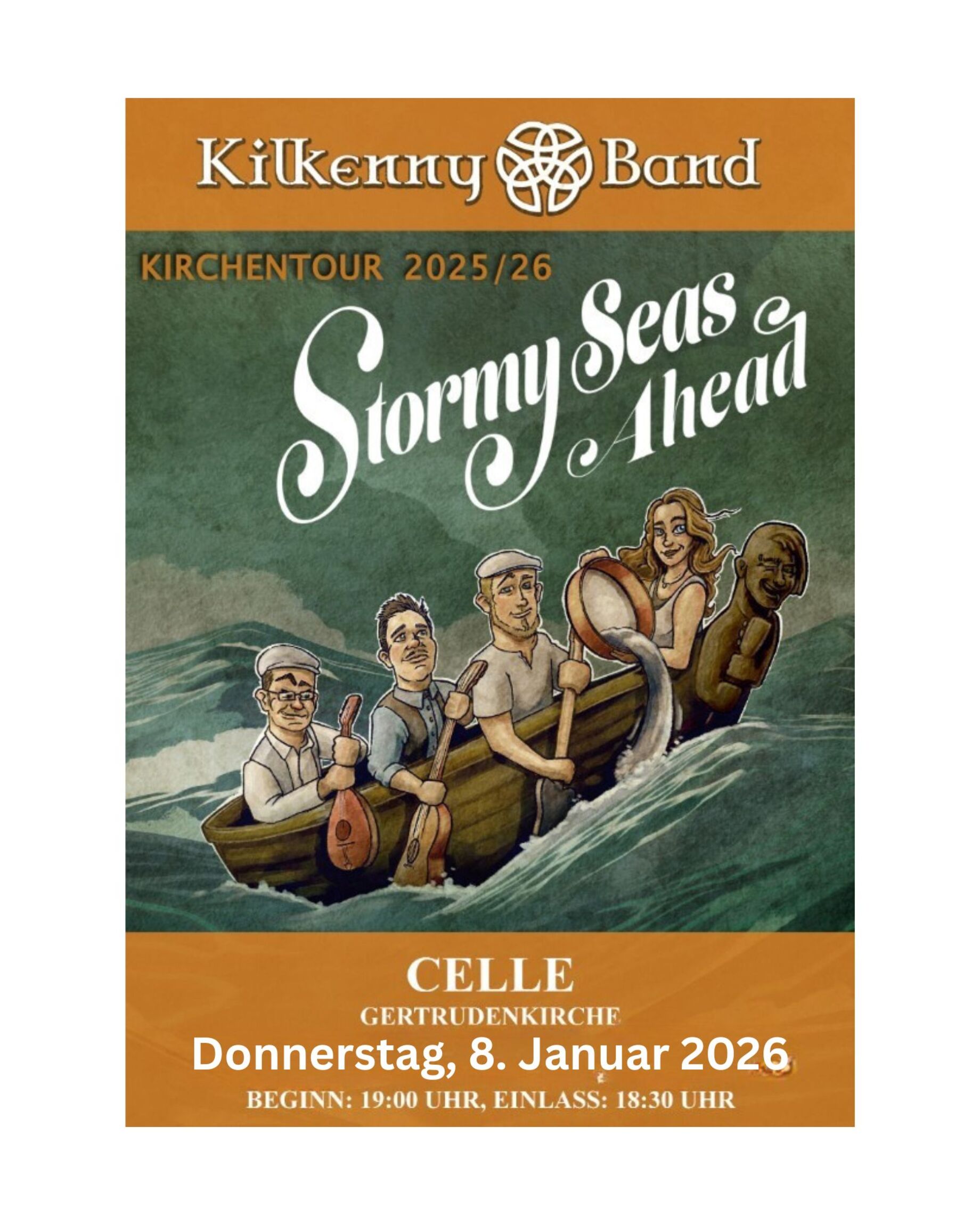 Die Osnabrücker Kilkenny Band ist seit 18 Jahren bekannt für ihre mitreißenden Konzerte in Irish Pubs, auf Stadtfesten und überall, wo es etwas zu feiern gibt. Seit 2016 ist ein komplett neues Projekt hinzugekommen: Balladen-Abende in Kirchen. Auf ihrer bereits neunten „Kirchentour“ unter dem Motto „Stormy Seas Ahead“ dreht sich alles um die Seefahrt, sowie das damit verbundene Heim- und Fernweh. Am Donnerstag, den 8. Januar 2026, sind die „Stormy Seas Ahead“ auch in der Altenceller Gertrudenkirche zu Gast.