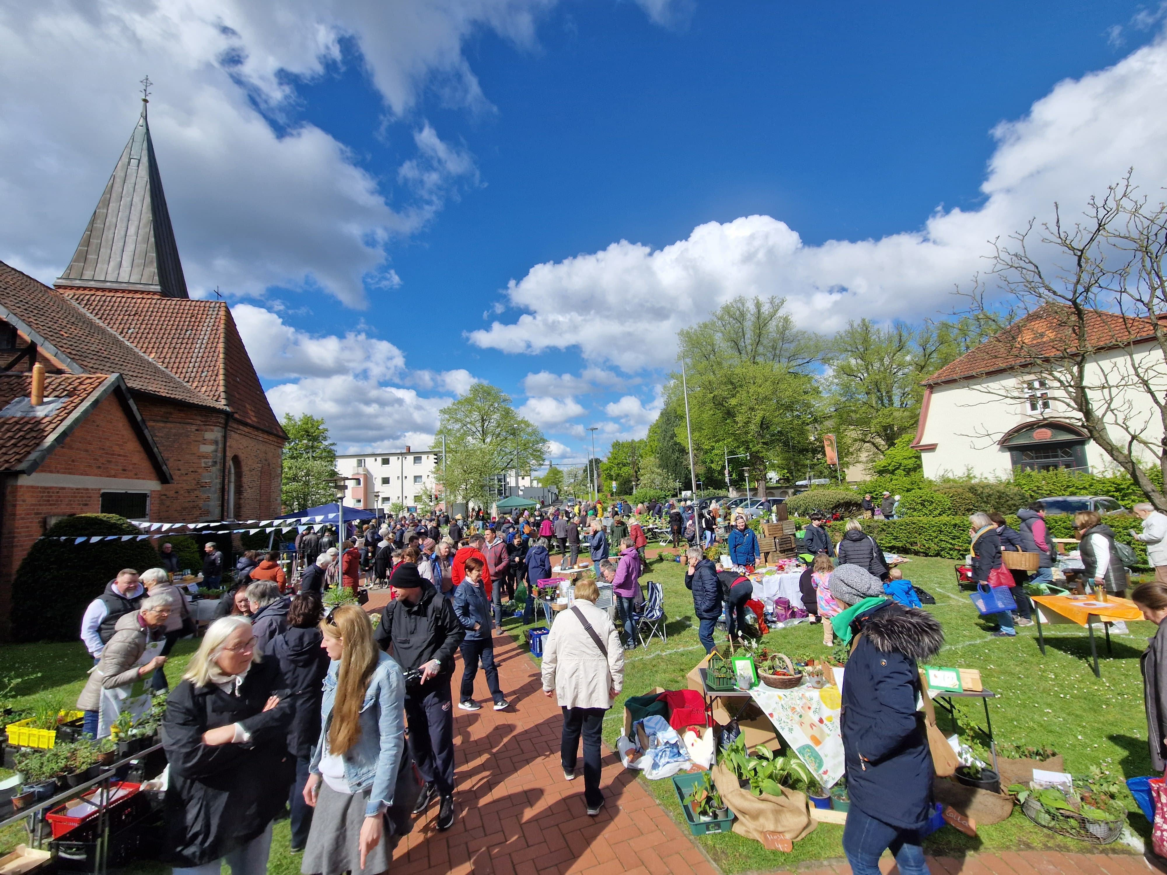 In der Blumlage werden sie ihrem Namen gerecht: Bereits zum elften Mal veranstaltet die Blumläger Kirchengemeinde die beliebte Pflanzenbörse vor der schönen St. Georg Kirche.